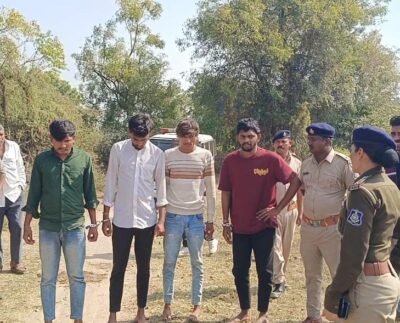 અરવલ્લીના સાઠંબા ગામે ઢોર ચારી રહેલા યુવક પર નશાની હાલતમાં રહેલા ચાર શખ્સોએ હુમલો કરતાં પોલીસે ચારેય આરોપીઓની ધરપકડ કરી સરઘસ કાઢ્યું